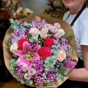 45,00 €Un ram delicat i viu amb lliri, roses, clavells i paniculata airejada — una combinació harmoniosa per a qualsevol ocasió.