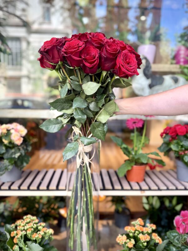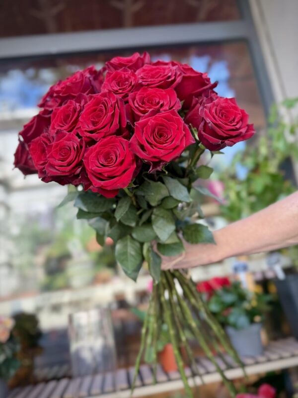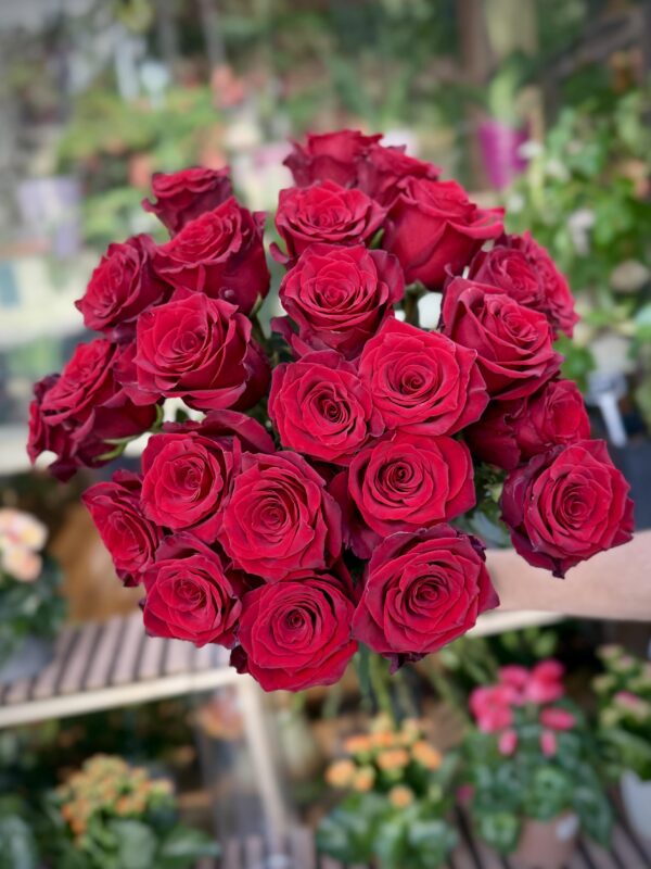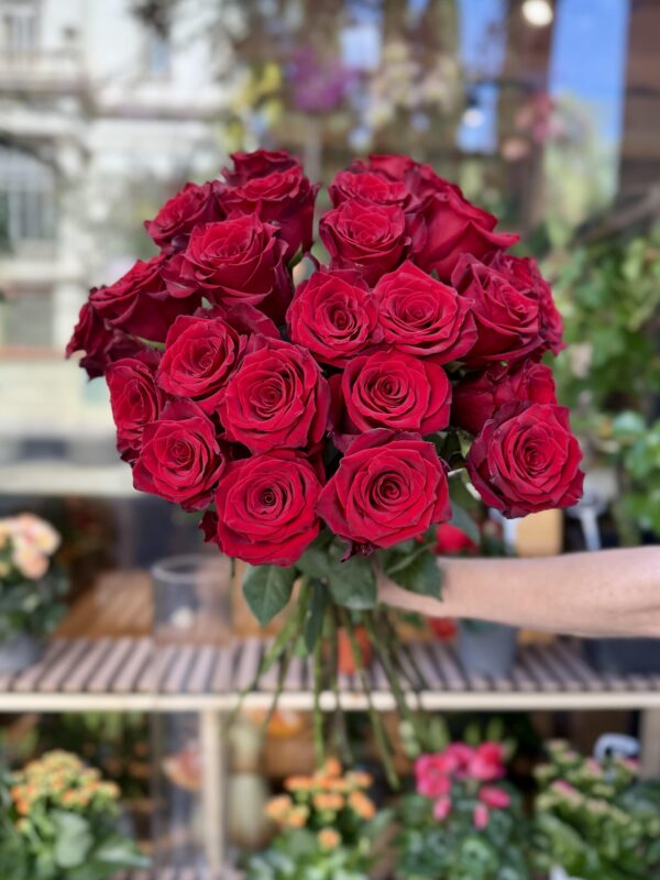 Aquest ram és la personificació de la més pura romanticisme. 25 roses vermelles de 70 cm parlen amb més força que qualsevol paraula, simbolitzant passió, tendresa i dedicació. Els seus pètals aterciopelats i intensos captiven la mirada i omplen el cor d’emocions. És el regal perfecte per a una declaració d’amor, un aniversari, un casament o qualsevol moment on vulguis dir: «Tu ets el més important». Les roses vermelles són el llenguatge universal del cor.